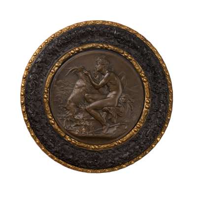 AFTER HENRI AUGUSTE PATEY, BRONZE RELIEF ROUNDEL OF BACCHUS AND GOAT