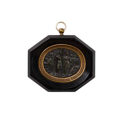 signed 'A. Patey, Rome 1883', within an ebonized and gilt frame; together with a BRONZE ROUNDEL, depicting Minerva and attendants