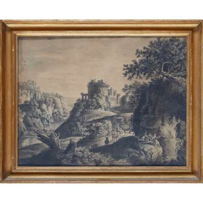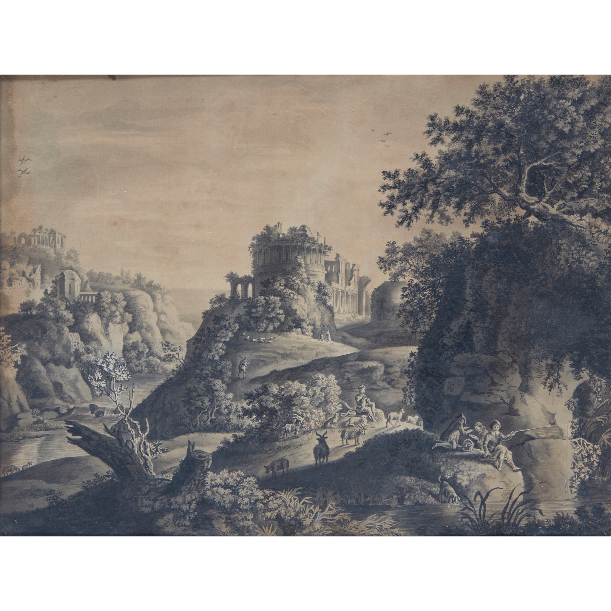 AN ITALIANATE LANDSCAPE WITH FISHERMAN