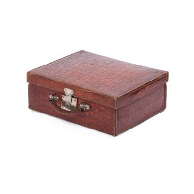 SILVER PLATE MOUNTED TOILET CASE IN CROCODILE SKIN Y