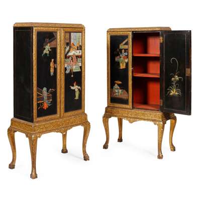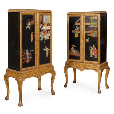 PAIR OF COROMANDEL LACQUER AND GILT WOOD CABINETS
