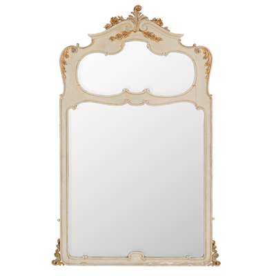 WHITE PAINTED AND GILT WOOD OVERMANTEL MIRROR