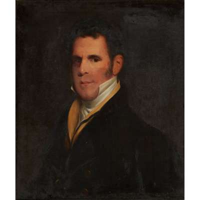 HALF LENGTH PORTRAIT OF A YOUNG MAN WITH WINGED COLLAR AND MUSTARD SCARF