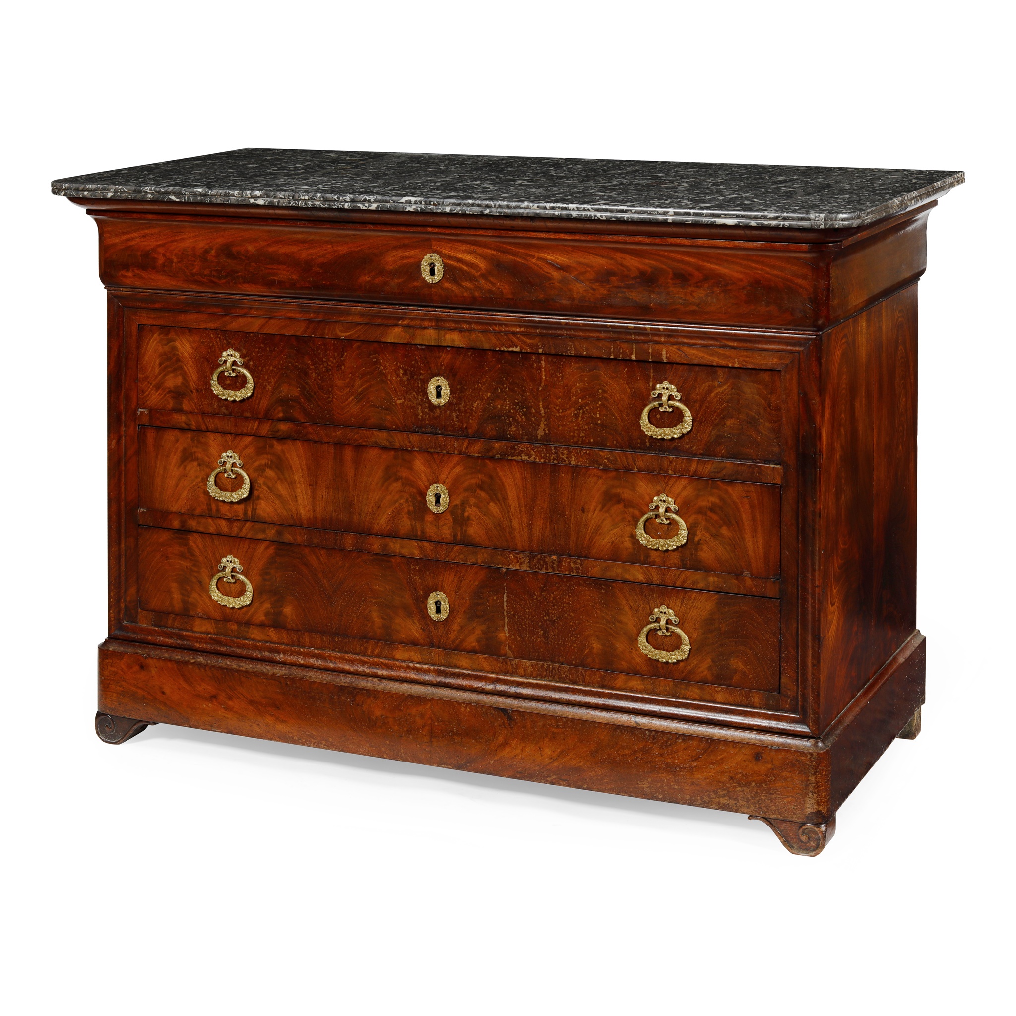 CHARLES X MARBLE TOPPED MAHOGANY COMMODE
