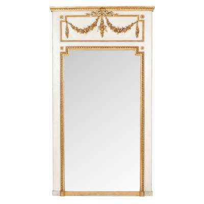 LOUIS XVI STYLE WHITE PAINTED AND GILT WOOD OVERMANTEL MIRROR