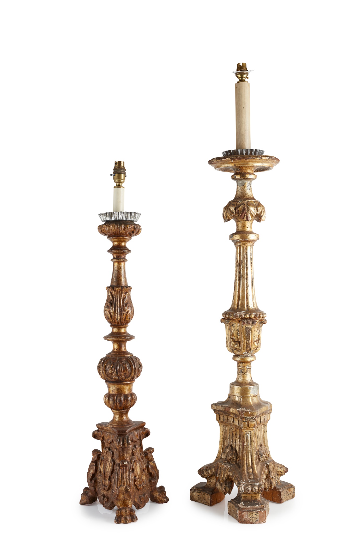 TWO ITALIANATE GILT WOOD TORCHÈRE LAMPS