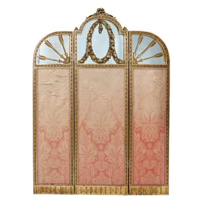 GILT WOOD FRAMED AND MIRRORED THREE-FOLD SCREEN