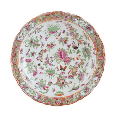 CANTON FAMILLE ROSE PORCELAIN LOBED DISH