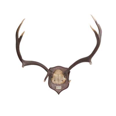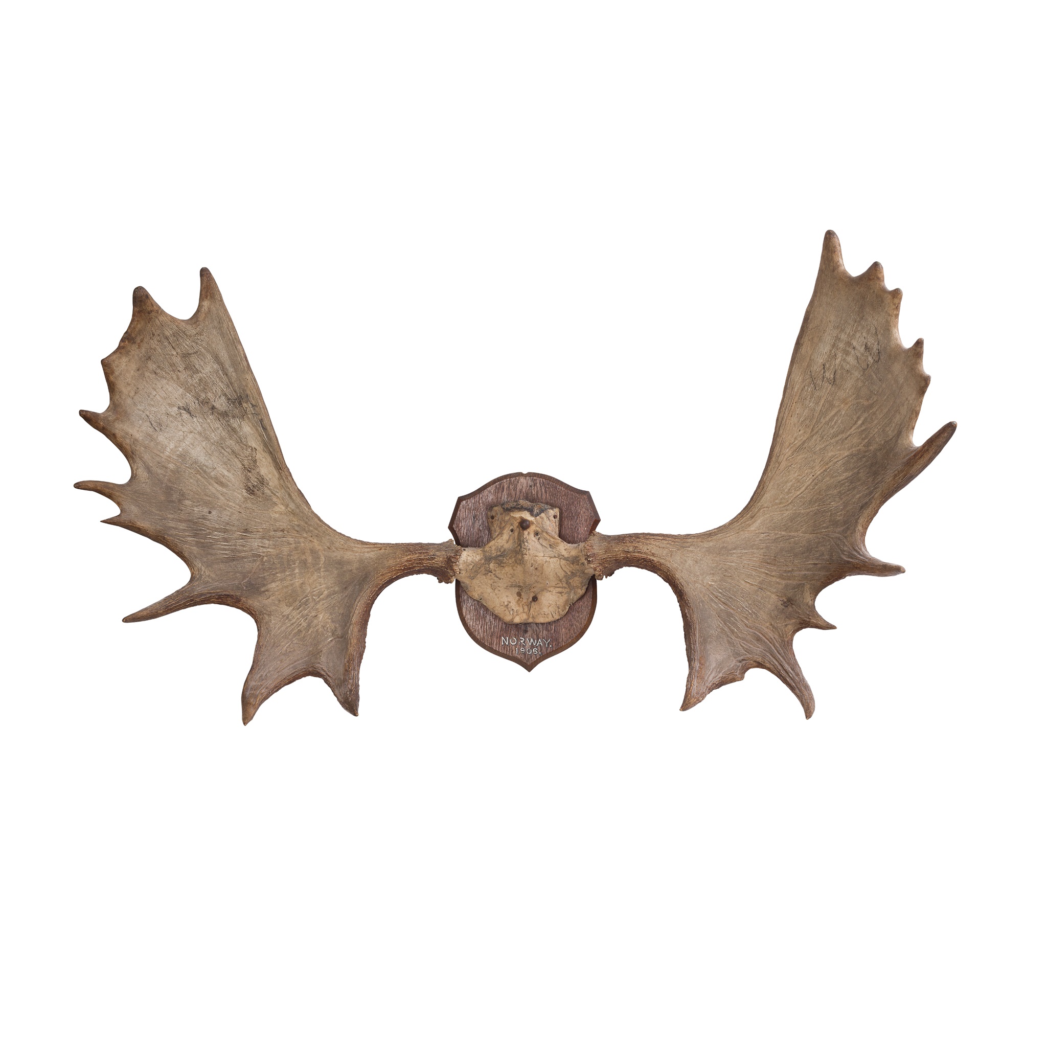 mounted on a wooden shield inscribed 'Norway 1906'; and a MOUNTED SET OF STAG ANTLERS