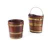 with bale handle; together with another MAHOGANY AND BRASS BANDED BUCKET