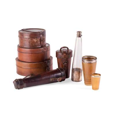 including suitcases, hatbox, cased travel cups, flask and other boxes