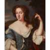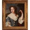 HALF LENGTH PORTRAIT OF A LADY IN BLUE ROBES HOLDING HER LONG HAIR