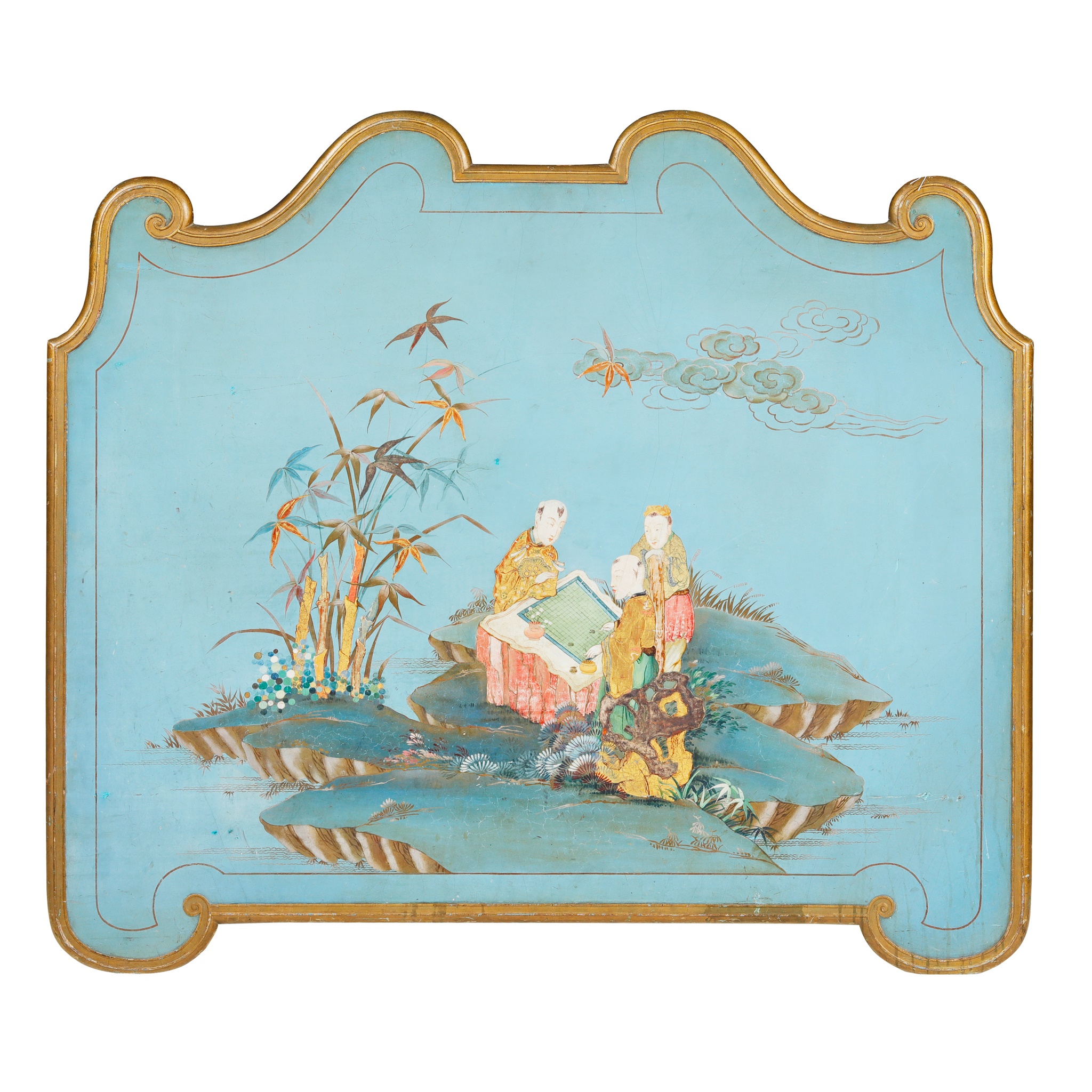 BLUE PAINTED WOOD CHINOISERIE PANEL
