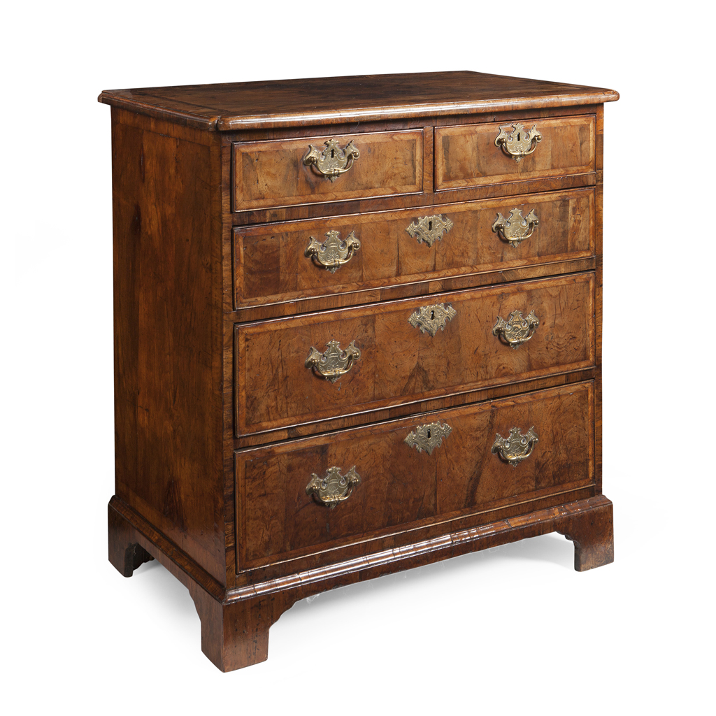 A GEORGE I WALNUT FEATHERBANDED CHEST OF DRAWERS