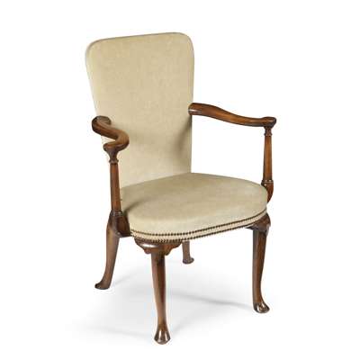 A SMALL QUEEN ANNE WALNUT ARMCHAIR