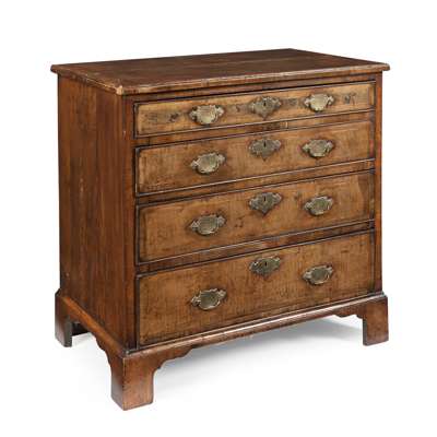 A GEORGE I WALNUT CHEST OF DRAWERS