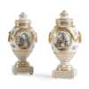 A PAIR OF KPM PORCELAIN URNS AND COVERS