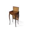 the serpentine top with a rising draught screen over a single frieze drawer, inlaid with floral marquetry, raised on slender square cabriole legs,