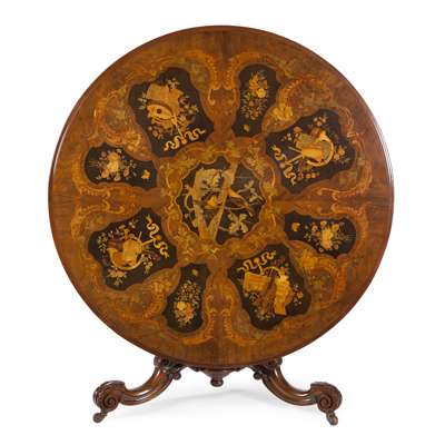 A GOOD VICTORIAN WALNUT AND MARQUETRY BREAKFAST TABLE
