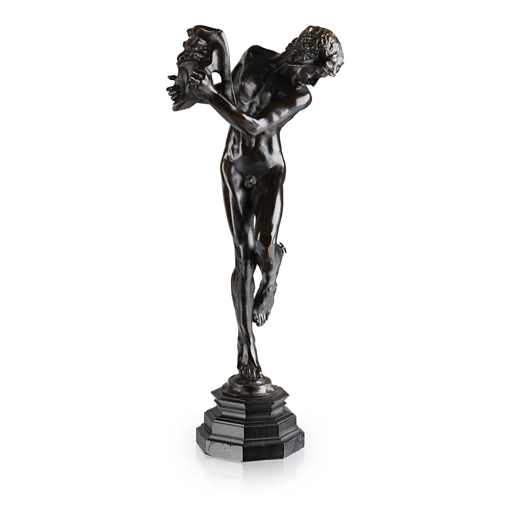 Note: New English Sculpture was a dynamic movement at the end of the 19th century which injected energy and naturalism into English sculpture. The medium had been dominated by a neo-classical style seen as rigid and irrelevant to human experience, so much so that Baudelaire even wrote a critique of the Paris Salon in 1846 titled ‘Why Sculpture is Boring’. The term ‘New English Sculpture’ was coined in Edmund Gosse’s article ‘The New Sculpture’ which was published by Art Journal in 1894, where he defined the movement as ‘a close and reverent observation of nature’. Leading sculptors such as Lord Leighton, Alfred Gilbert and Hamo Thornycroft revived the Italian Renaissance art of ‘lost wax’ bronze casting in order to finely render surface details like musculature and facial expressions in a more naturalistic manner. This approach was introduced by Aimé-Jules Dalou, who disseminated the French method of direct modelling during the period he spent teaching at South Kensington School of Art from 1877 to 1880. This combination of traditional and modern continental influences prompted these artists to recast well-worn classical myths in a distinctly original and relatable style. The movement re-established the relevance of sculpture within society by embracing the statuette, which bridged the divide between high art and decorative art without compromising on the standard of craftsmanship. Until the 1860s sculpture was primarily limited to the marble portrait bust or large classical figure, but these smaller bronze casts created a new sculptural category which suited the scale and price desired by homeowners. The cult of the statuette was a popular feature in late Victorian and Edwardian architectural design and enabled the classical heroic figure to fulfil a new decorative role within a domestic setting.