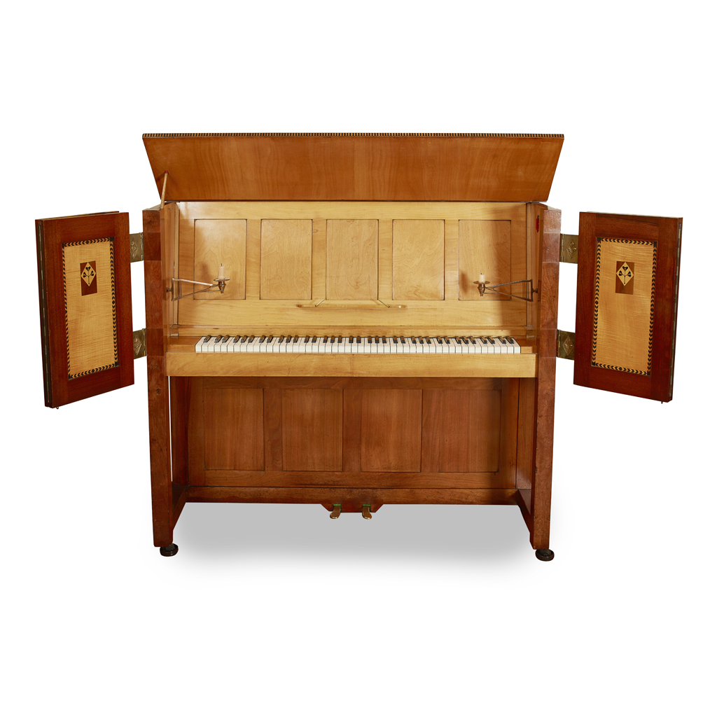 ARTS & CRAFTS WALNUT, BIRCH AND INLAID UPRIGHT PIANO, CIRCA 1907