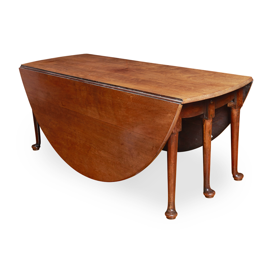 LARGE GEORGE II MAHOGANY CIRCULAR DROP-LEAF DINING TABLE