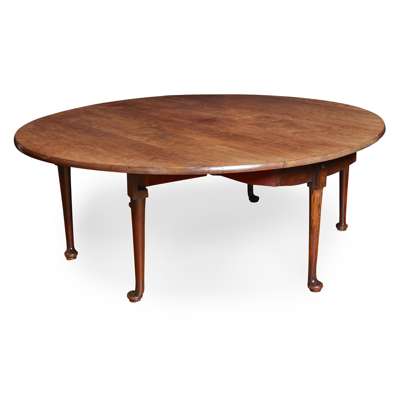 the oval top, raised on six tapered legs ending in raised pad feet, with double gateleg