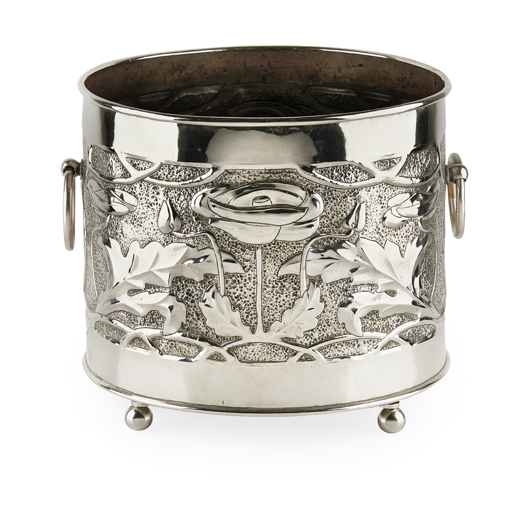 REPOUSSÉ METAL CACHE POT, CIRCA 1910