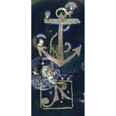 decorated with fish swimming through seaweed, painted artist’s cypher to the base, indistinctly impressed factory marks XII/ ENGLAND