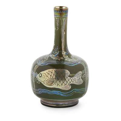 decorated with fish swimming through seaweed, painted artist’s and date cyphers to the base, impressed factory monogram and marks 2761/ X/ ENGLAND