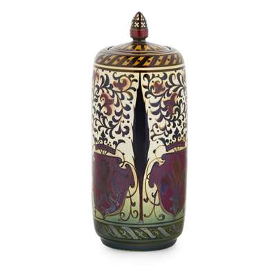 ROYAL LANCASTRIAN LUSTRE JAR & COVER, DATED 1916