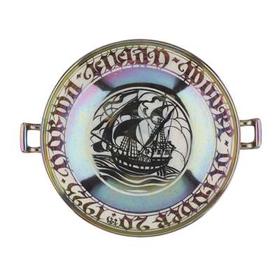 TWIN-HANDLED LUSTRE DISH, DATED 1925