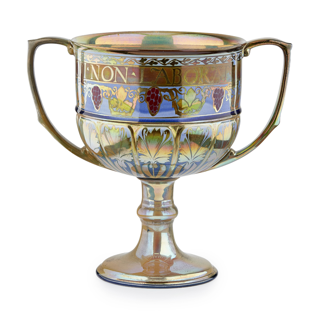 LANCASTRIAN LUSTRE TWIN-HANDLED GOBLET, DATED 1910