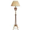 the ovoid reservoir with leafy bracket supports on turned and knopped adjustable support with three applied brackets, raised on curved legs with paw feet, later converted to electricity, with pleated silk shade