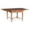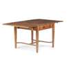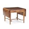 with opposing drawers with square-set handles, below blind carved triangular frieze, and two drop leaves, raised on tapered carved legs, united by a carved H-form stretcher, handwritten label to drawer (indistinct) HARRY GREEN/ NO. 4/ MADE 1926