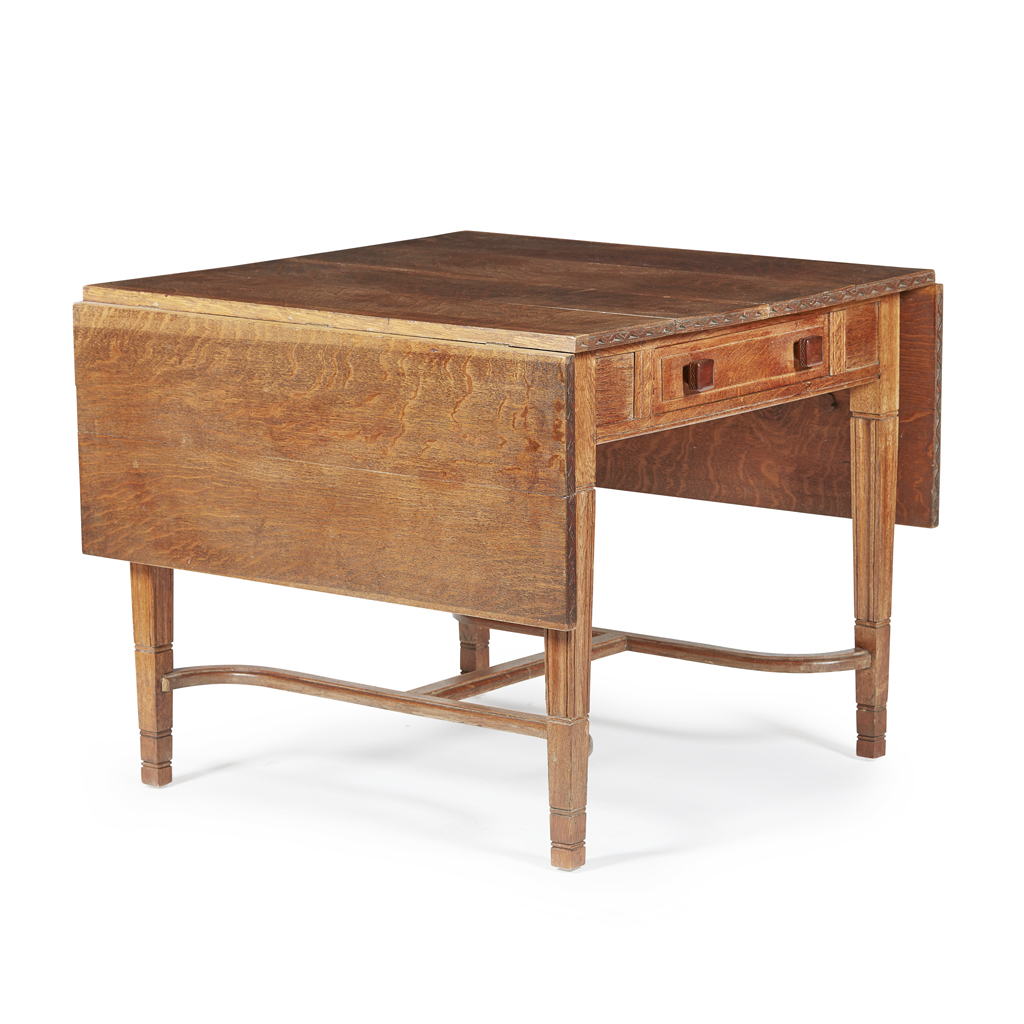 ARTS & CRAFTS OAK DROP-LEAF TABLE, DATED 1926