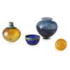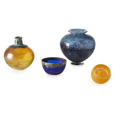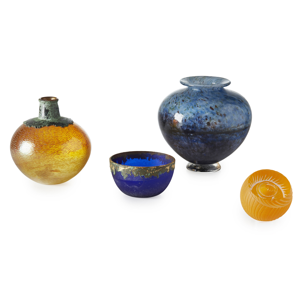to include a SIDDY LANGLEY ORANGE GLASS VASE, with metal mount, signed and dated 1989, 14cm high; and three other pieces of contemporary glass (4)