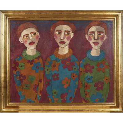 THREE GIRLS IN FLORAL DRESSES