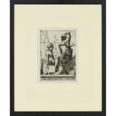 and three further etchings by the same hand ‘The Lion and Unicorn’ , 'Castle Urquhart' and 'Mar's Work, Stirling' (4)
