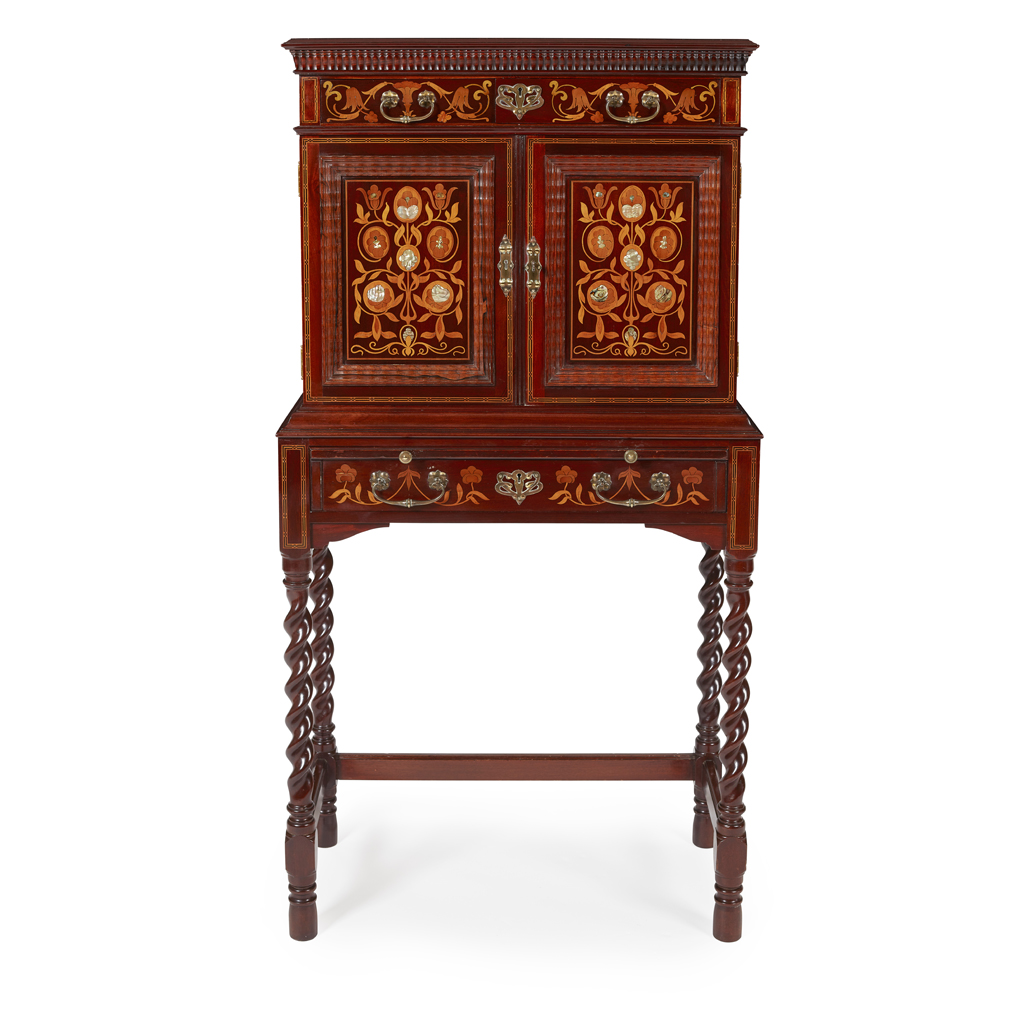 ARTS & CRAFTS INLAID MAHOGANY CABINET, CIRCA 1900
