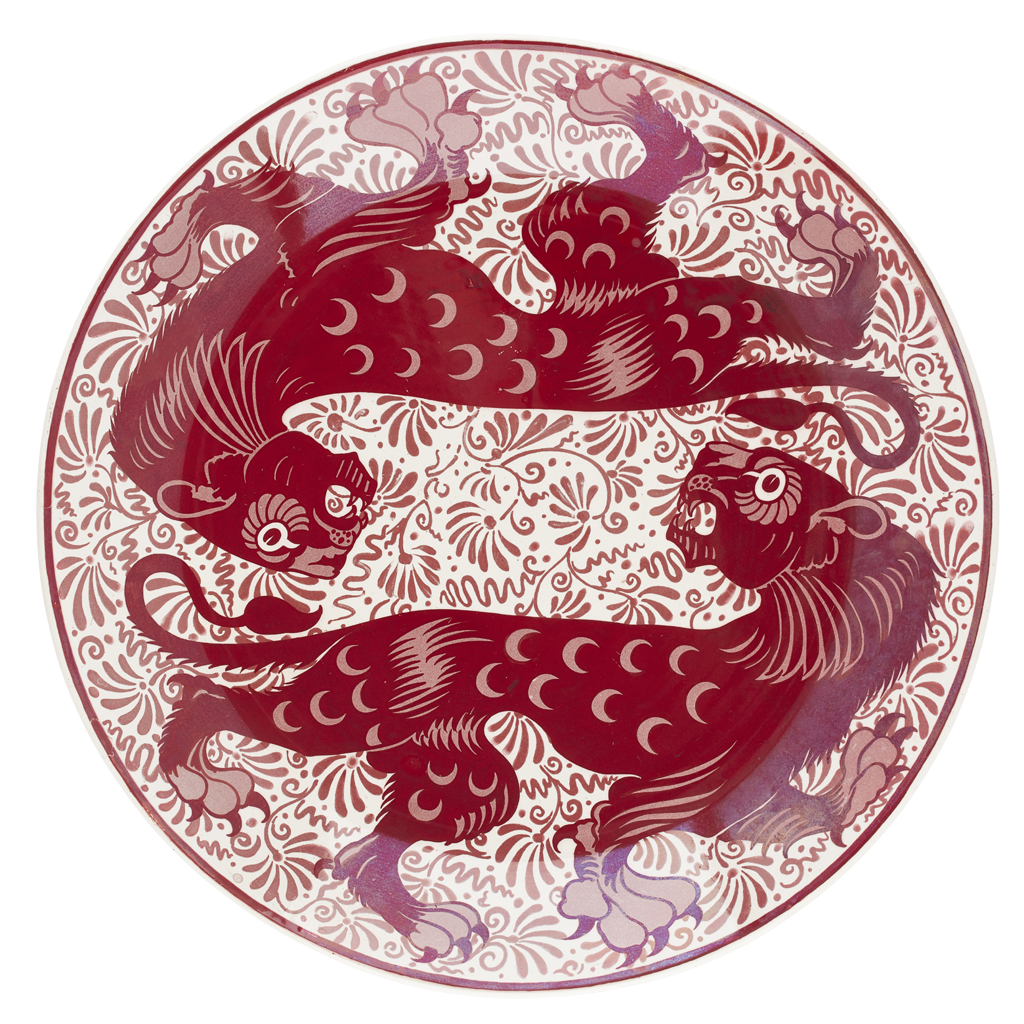 decorated with opposed lions on a foliate ground, and verso with concentric rings, bears artist’s initials C.P. and impressed number 20