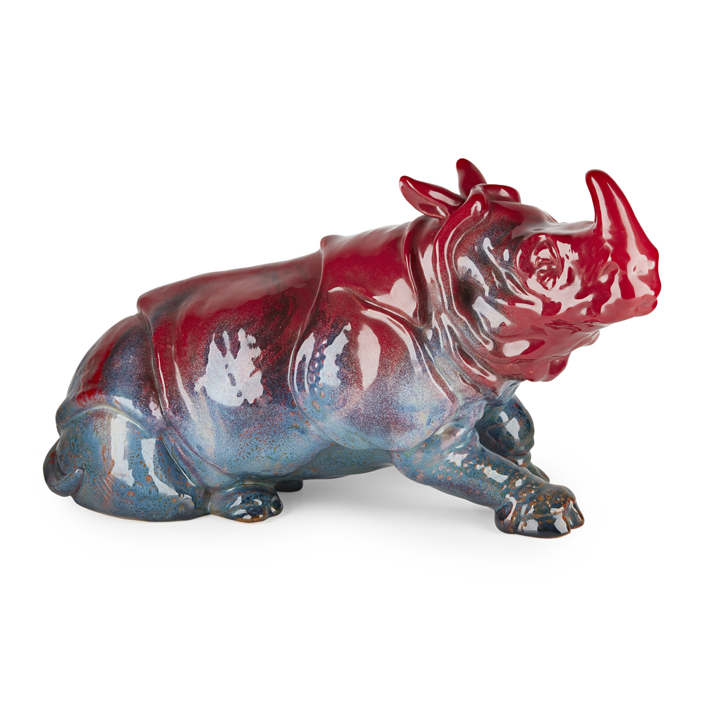 HN615, VEINED FLAMBÉ FIGURE OF A RHINO, MID-20TH CENTURY