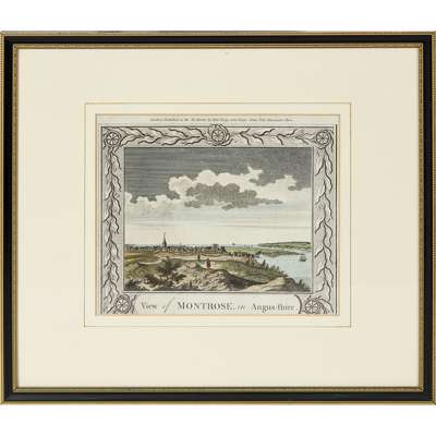 comprising: Daniell, W. Montrose - Forfarshire; Small map of Forfarshire; Small steel-engraving of Montrose; Hogg, Alexander: View of Montrose in Angus-shire; Mary Stewart Queen, engraved by R. Dunkarton; Chromolithograph of an unidentified house; Abelard & Eloise, sold by Carrington Bowles; Hogarth, W.: The Enraged Musician, 1741; Engravings of houses: Duninald, Southesk, Usan, Rossie Castle (12)