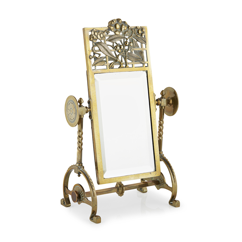 AESTHETIC MOVEMENT BRASS TOILET MIRROR, CIRCA 1880