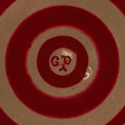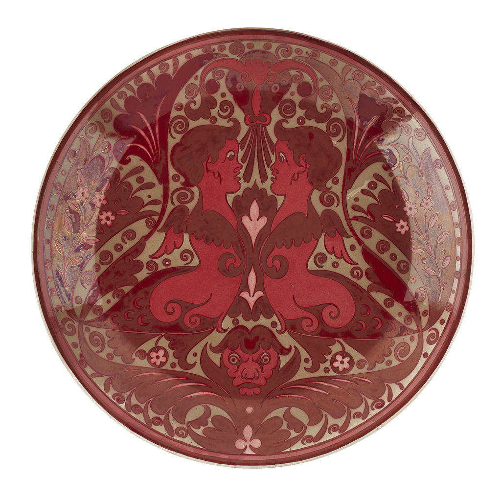 decorated with opposed term figures on a foliate ground, bears artist’s initials C.P.