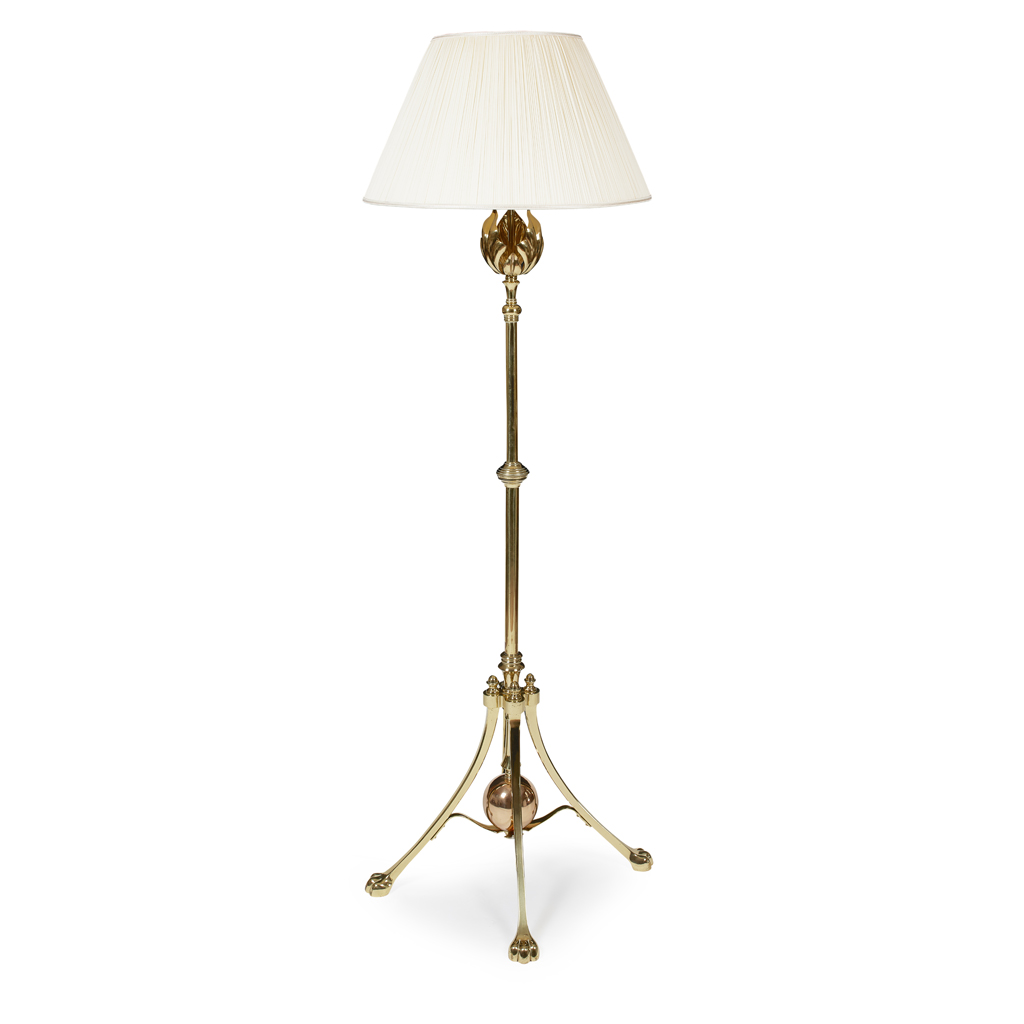 BRASS AND COPPER EXTENDING STANDARD LAMP, CIRCA 1900
