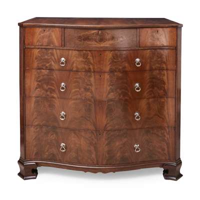 GEORGIAN STYLE MAHOGANY SERPENTINE CHEST OF DRAWERS, FIRST HALF 20TH CENTURY