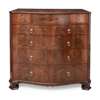 comprising three short drawers above four graduated long drawers, flanked by canted angles, raised on shaped ogee bracket feet