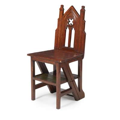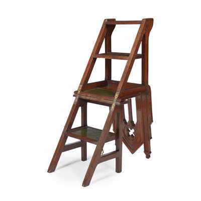 SET OF VICTORIAN GOTHIC REVIVAL OAK METAMORPHIC LIBRARY STEPS