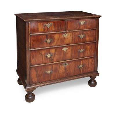 QUEEN ANNE OAK AND WALNUT CHEST OF DRAWERS